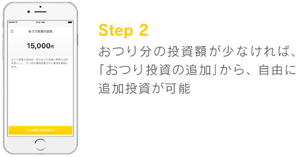 「おつり投資」ということで、クレカ明細などと連携し、買物額の端数を投資にまわすことができる。